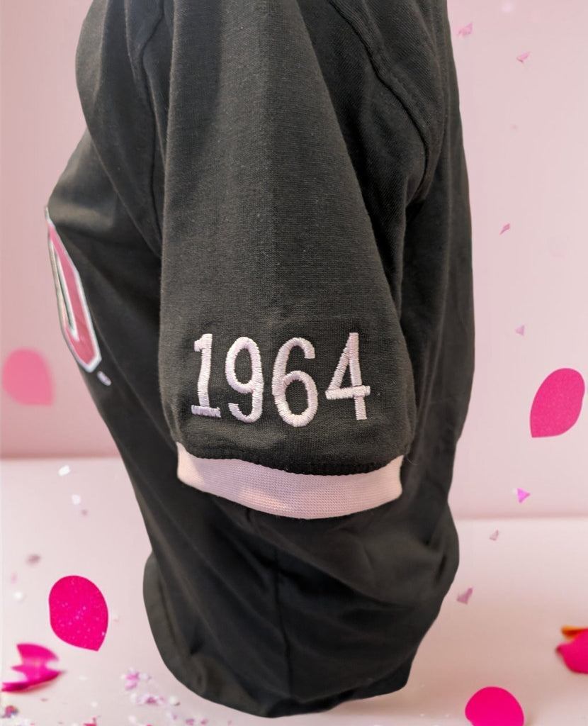This TLOD v-neck shirt features an embroidered logo on the front and founding year 1964 embroidered on the sleeve. Made from a comfortable cotton-poly blend, it runs slightly large and has snug sleeve cuffs for those with larger arm circumference. Show off your pride in style.