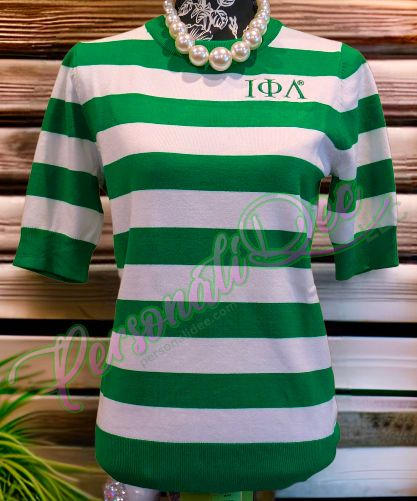 Upgrade your wardrobe with the simple yet classy green and white soft knit sweater. Dress it up or down. Stay cozy and comfortable in its ultra-soft material and featuring embroidered Greek-letters. Plus, with a true-to-size fit, you'll look and feel your best. Elevate your style with this perfect piece. Available in sizes S through 4XL.