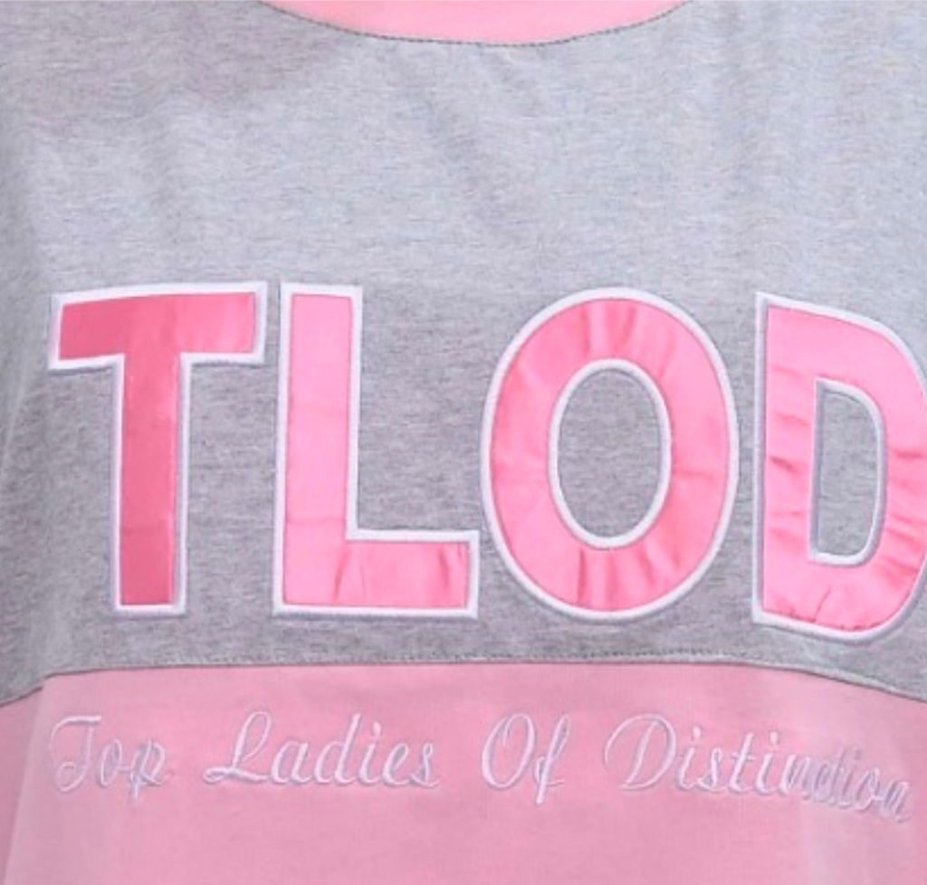 The TLOD dual color embroidered tee is a stylish and unique addition to your wardrobe. The gray and pink color combination is eye-catching, while the embroidered "Top Ladies of Distinction" adds an extra touch. This tee also offers a versatile fit, as it runs large so you can size down for a closer and more flattering look.